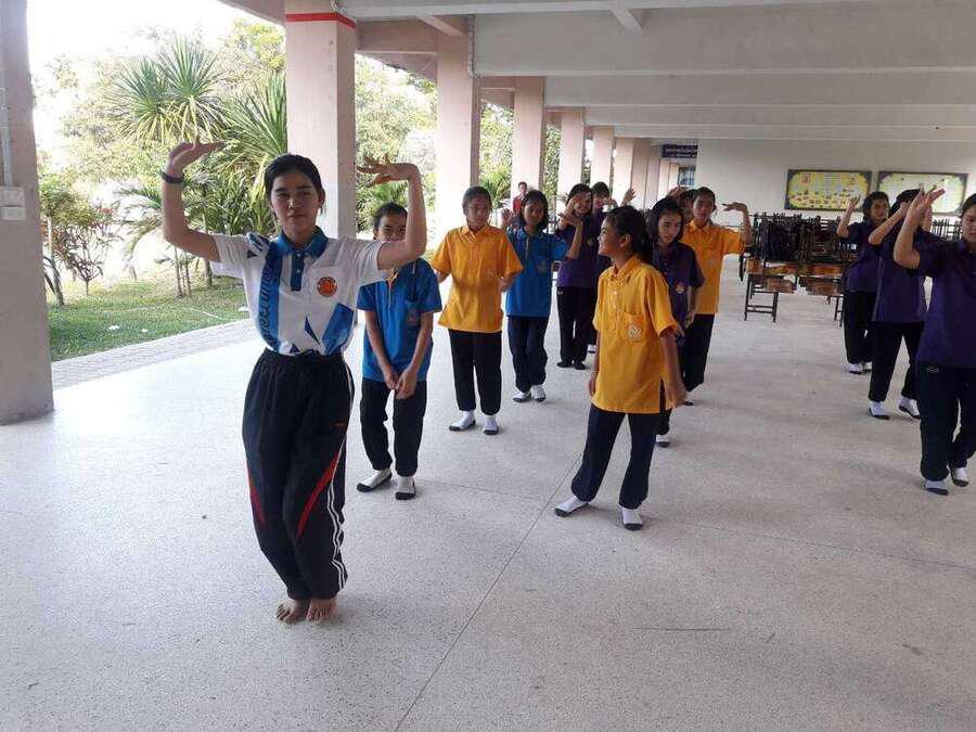 รุ่นพี่นักเรียนทุนหลวงพ่อมาช่วยฝึกน้องซ้อมเตรียมรำแห่กฐินที่วัดศรัทธาราม อ.บ้านม่วง จ.สกลนคร วันที10 พ.ย.61 S:0