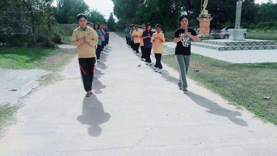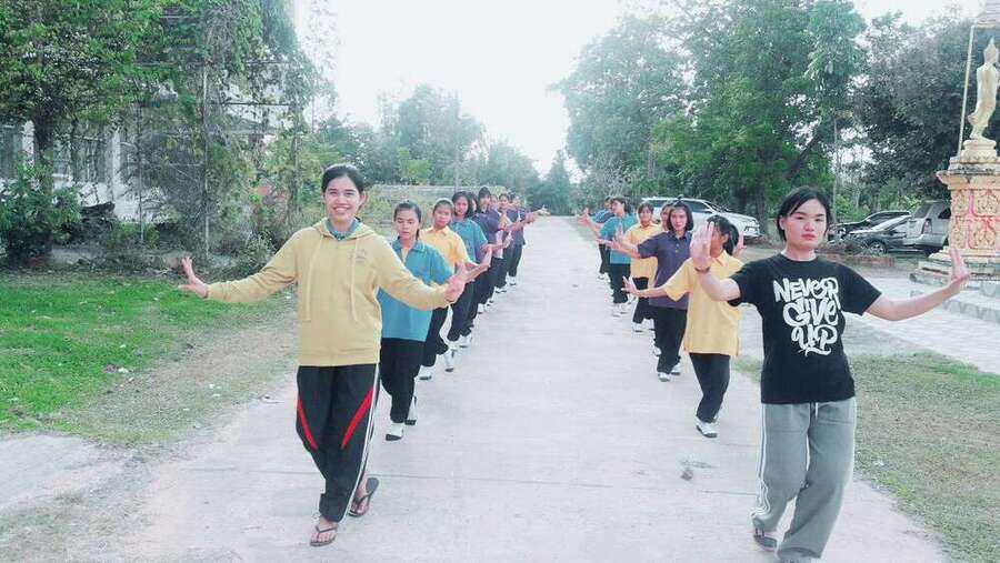 รุ่นพี่นักเรียนทุนหลวงพ่อมาช่วยฝึกน้องซ้อมเตรียมรำแห่กฐินที่วัดศรัทธาราม อ.บ้านม่วง จ.สกลนคร วันที10 พ.ย.61